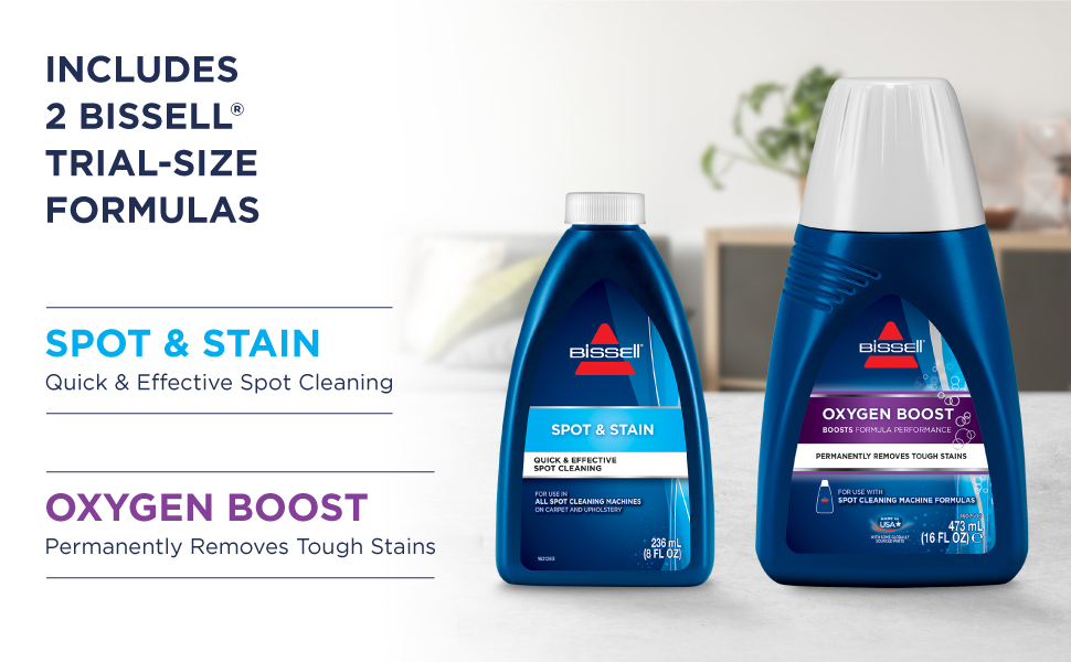 Our BISSELL Spot & Stain + Oxygen Boost formula permanently removes tough spots and stains. It quickly cleans up a variety of messes in and around the house. BISSELL MultiClean Spot & Stain Carpet Cleaner includes a removable water tank for easy filling and emptying. The two tank system allows to clean with clean water while the dirt and grime are stored in a different tank. Helps maintain consistent water temperature while cleaning. It is our best cleaning System for the toughest stains & odors - it even removes skunk odors. Once you'redone cleaning